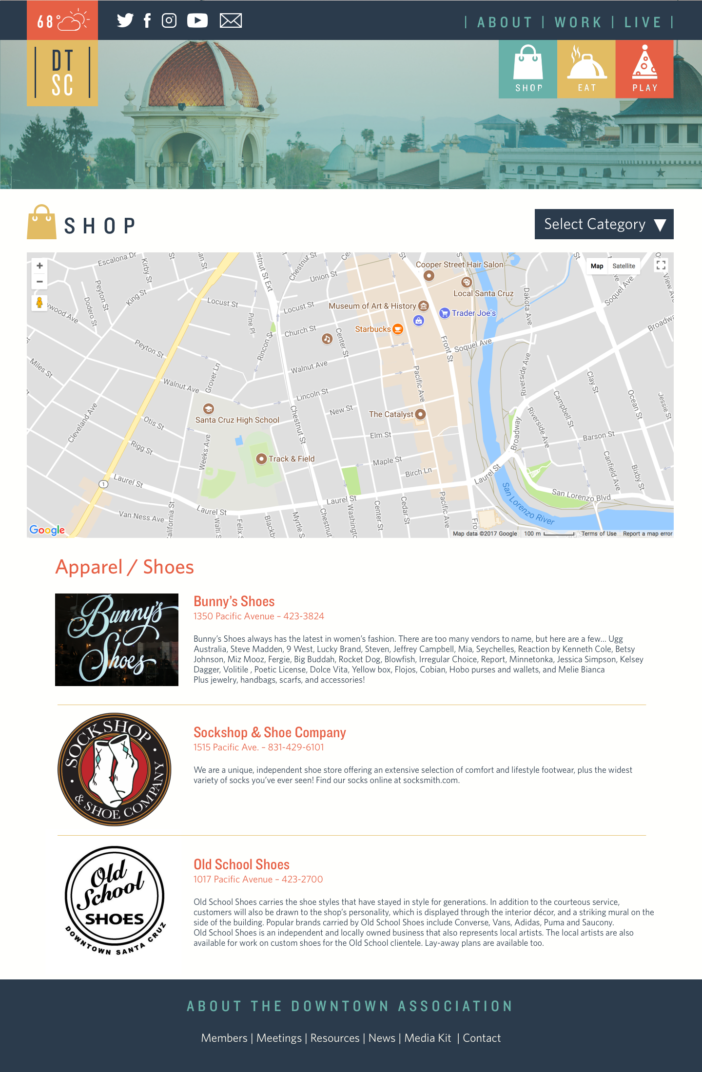Web site design and development for Downtown Association of Santa Cruz, CA.